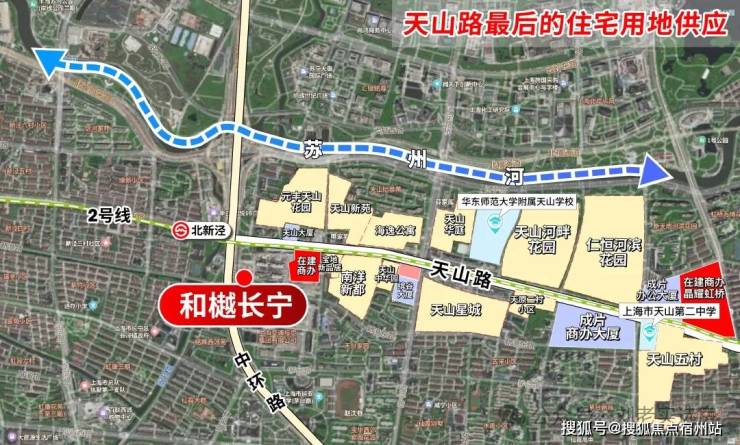 从卫星图看,和樾长宁俨然是天山路两旁 最后的住宅用地供应!买进即封顶的绝版资产!
