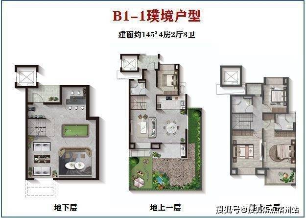 面积上与B1-1户型相同,建面约145㎡,功能区也大致相似