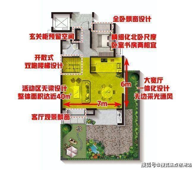 大横厅设计,南向面宽达到约7米,IMAX巨幕级采光面。恒文璞悦江南售楼处电话 400-8266-670✅✅U型厨房,餐厅与客厅一体化设计,客厅还带飘窗,家庭活动空间达到了40 m²,非常阔绰。
