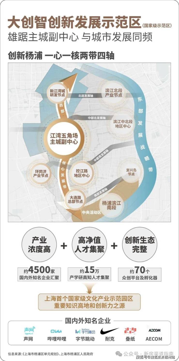 江湾五角场和新江湾城共同构建了大创智创新发展示范区。形成了世界级的产业集群,是 “产业浓度、人才浓度、创新生态” 兼具的创新功能聚集区。
