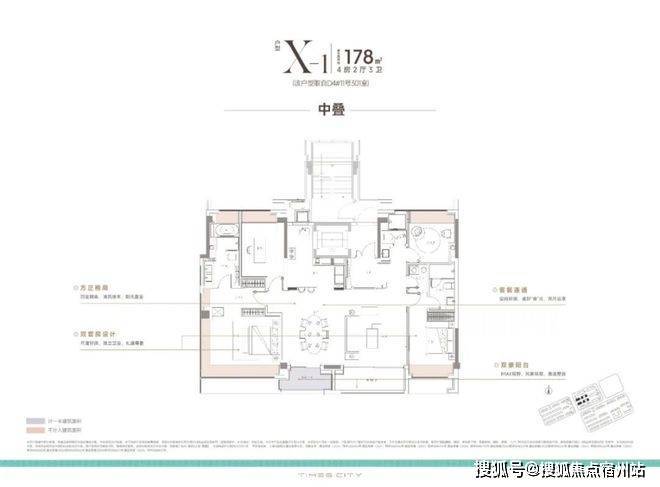 中平户型以四开间朝南的IMAX级采光面,打造出堪比市区豪宅的尺度感。4房4飘窗2阳台的设计,配合双套房布局,一共有三个套房,让每个家庭成员都享有独立私密空间。