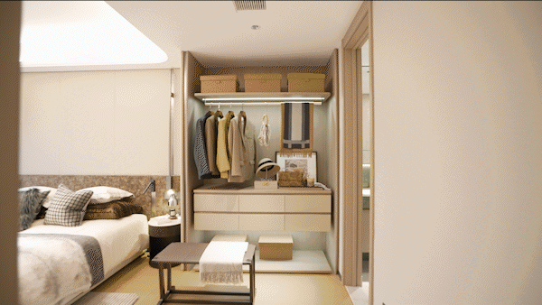 主卧套房设计,约23平超大空间,搭配步入式衣帽间+卫生间+飘窗,私密性和舒适度简直爆表!