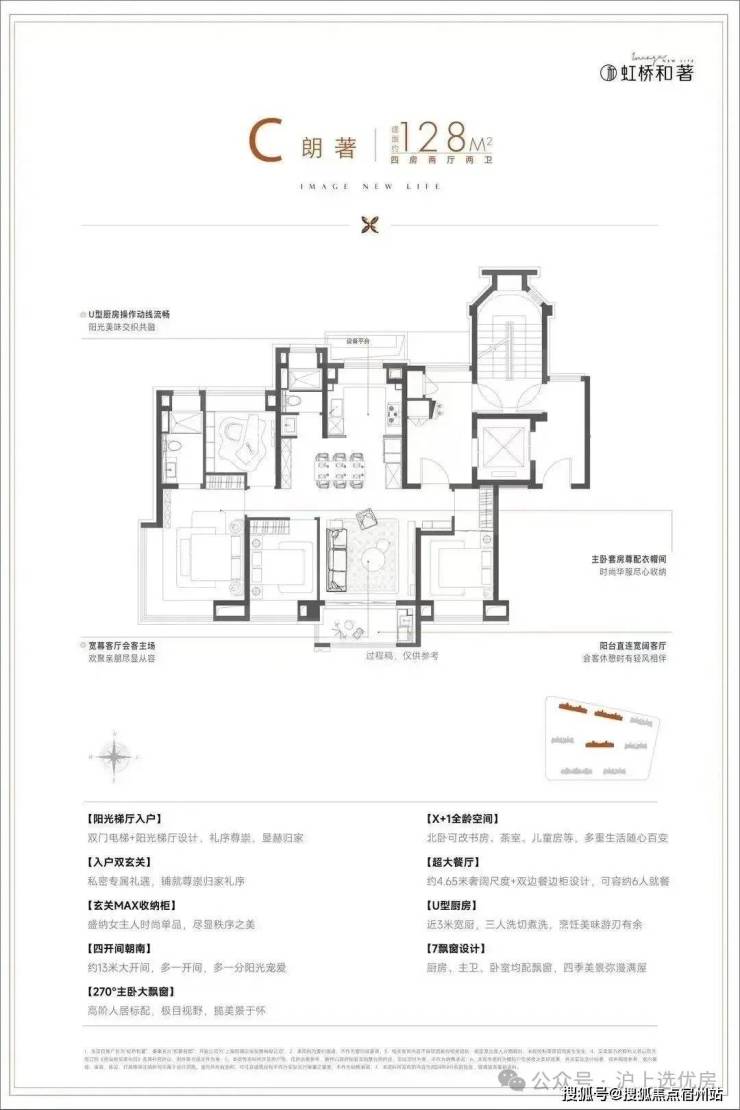 过去很长一段时间,由于土地端7090政策限制,新房产品绝大部分以百平米左右刚需产品为主, 而保利虹桥和著此次将推出建面约128㎡稀缺舒适四房,本身就是一次难得的改善机遇,更何况该户型设计非常亮眼, 四开间朝南设计,尽可能将更多阳光引入室内, 主卧270度飘窗+南北通透大套房设计,同级别户型中十分罕见,充分满足舒适度和身份感。