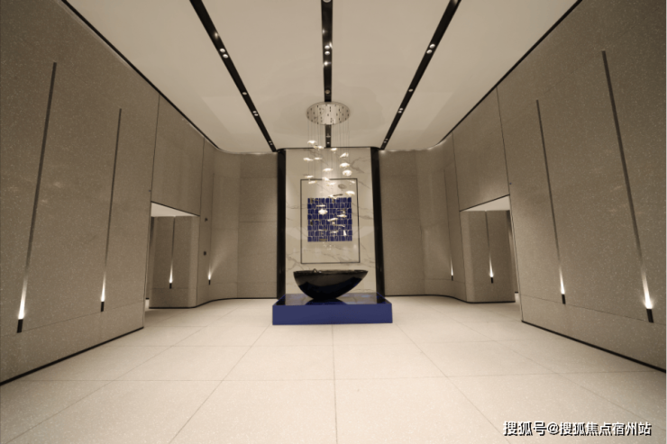 大堂墙面全部采用定制弧面铝板,每一个弧面都代表着经费。