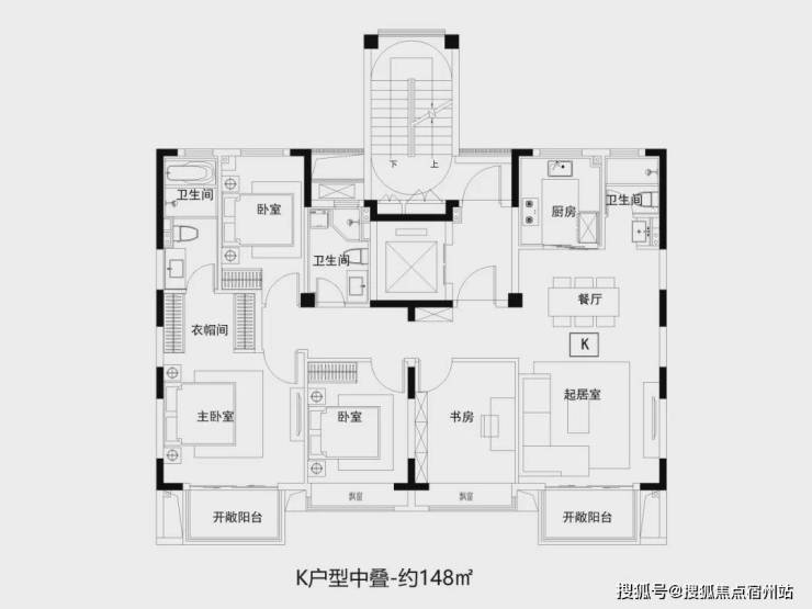 三开间朝南,创新双卫+公共洗漱台设计,解决早晚高峰排队难题