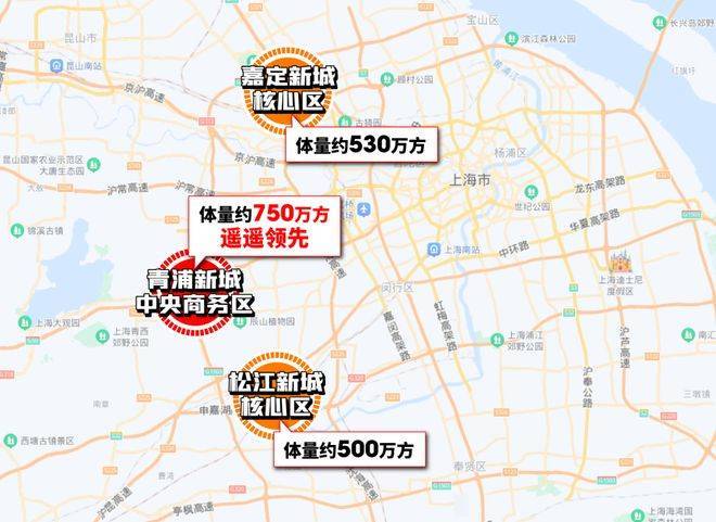 对比一下嘉定新城约530万方,松江新城约500万方的中央商务区,青浦新城中央商务区的能级和规模无疑都是更高的。