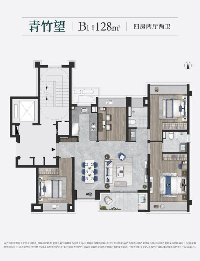 约128㎡4房2卫户型是约99㎡的升级版,四房更能保障业主的全生命周期需求。