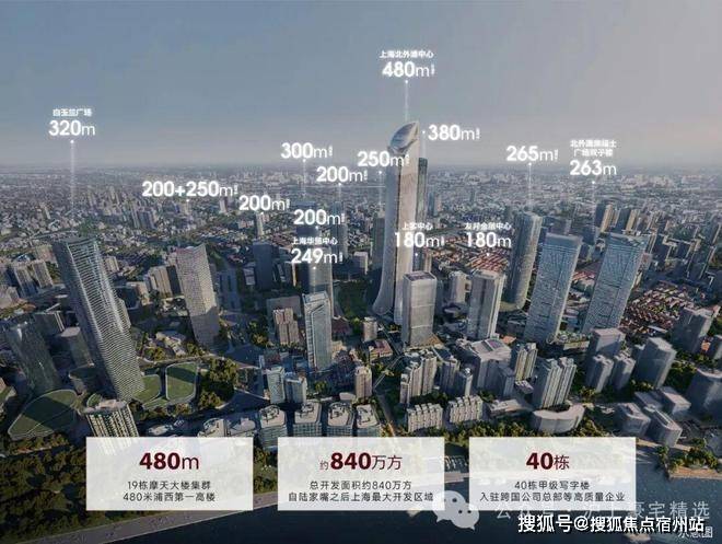 北外滩将建设480米高的浦西第一高楼——上海北外滩中心,未来将携19栋摩天大楼集群共筑上海崭新天际线。