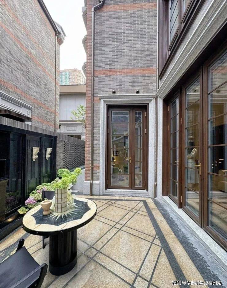 而在与砖连接的窗体,保利永兴里别墅的窗框及四周采用了仿木纹铝型材和铝板,门窗套为浅色石材。