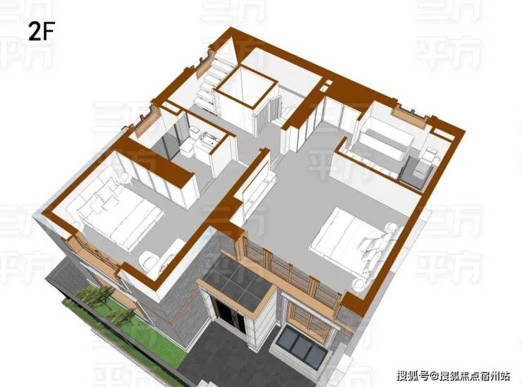 二层设置了两个套房,均朝向南侧, 每个套房都配备了独立的卫生间和衣帽间,卫生间全明设计,尺寸舒适。