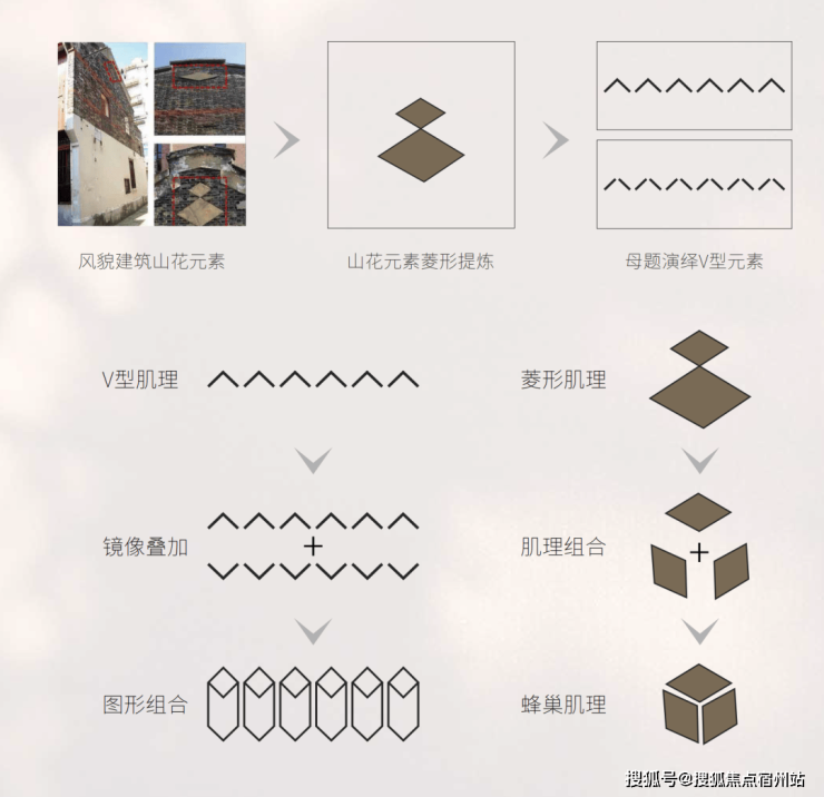 永兴里从老城厢建筑中提炼出 “菱形山花” 作为超级符号,将其转化为门头雕花、地库导视甚至园林小品的视觉母题。