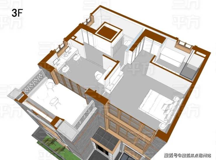 三层:主卧+ 书房组成豪华套房,将近40㎡,一层一户,将主人空间需要的尺度感与私密性拉满,同时外接约 11.35㎡露台,将城市风景与星空纳入日常。