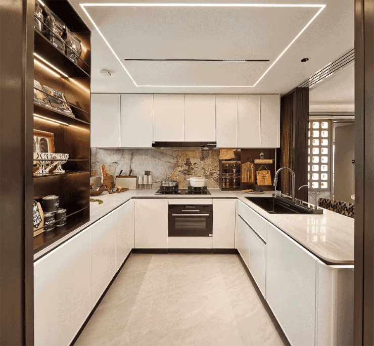 将烹饪区设置低于水槽区,恰好契合烹饪时手臂自然下垂的舒适角度,✅✅保利·天奕售楼处电话:400 - 8824 - 258✅✅让烹饪的动作更行云流水,减轻家务带来的疲劳感