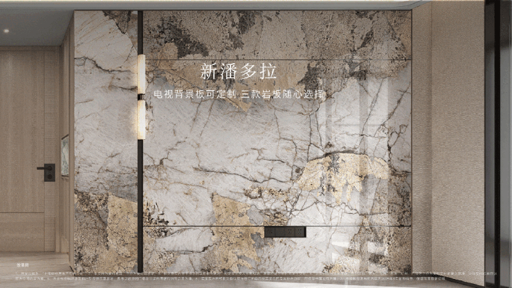 现在开发商都在卷奢材,✅✅保利·天奕售楼处电话:400 - 8824 - 258✅✅保利天奕更是卷到天际,充分考虑业主的个性化需求,在电视背景板提供了新潘多拉、云中翡翠、弗朗明戈金三种结晶釉面岩板选择,成本更高,施工难度也更大