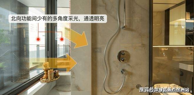 相比常规户型只是全卧飘窗布置,Bund98户型不仅厨房带飘窗,主卧和两个卫生间更带双侧采光的270度飘窗,总共七个飘窗,飘窗不计入建筑面积,附赠远超常规户型。