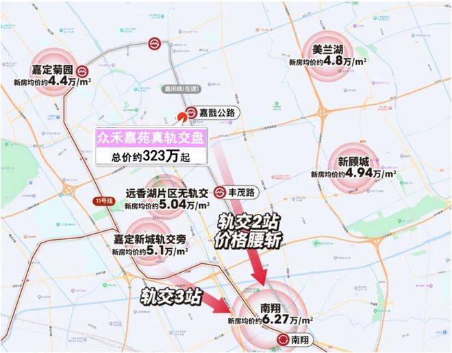 往前两站的南翔,新房均价站上6万+,两站地铁,价差约1.7万/平,同样买百平米三房,能省下将近二百万左右!性价比一目了然,☑️☑️众禾嘉苑售楼处电话:400 - 8377 - 020☑️☑️