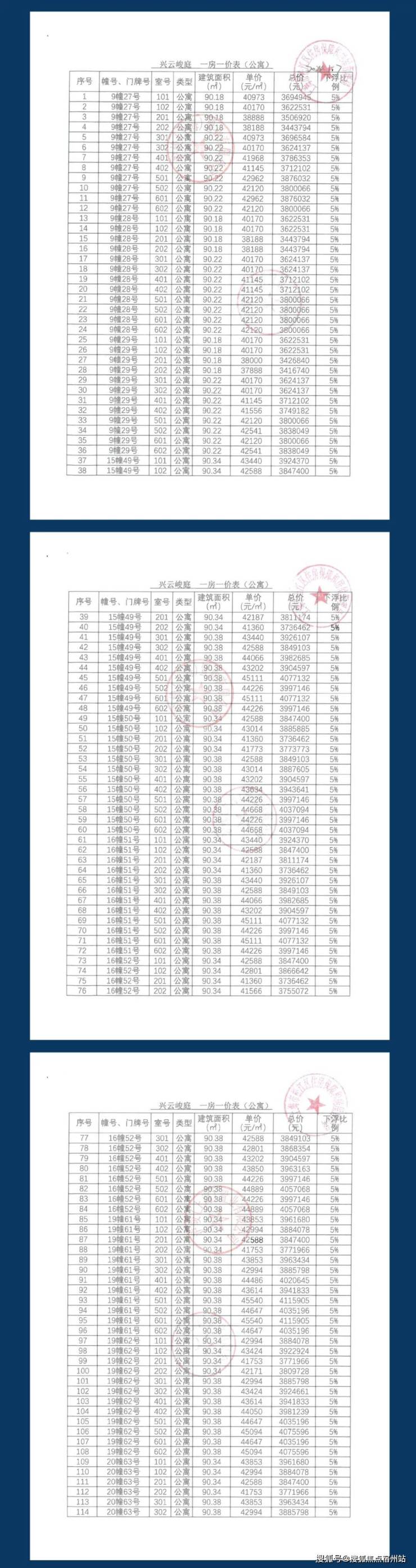 一房一价表如下所示: