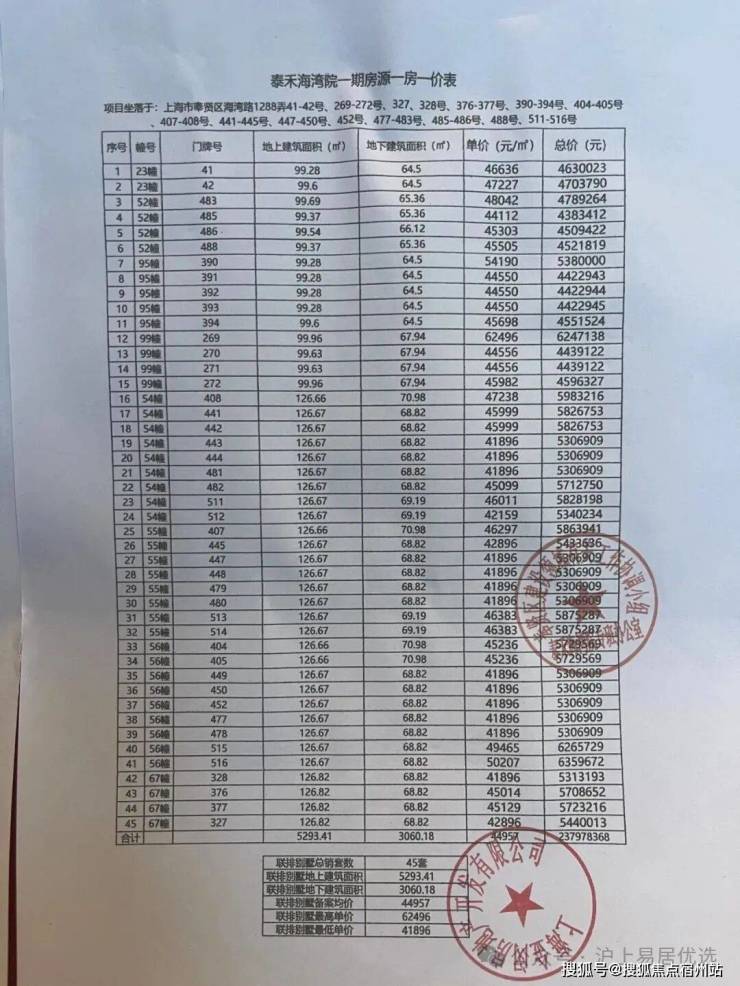 最新一房一价表: