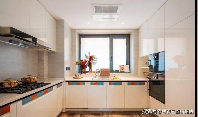 同时项目首创的“艺术柜体”,把艺术家陈亮的“大山水”作品镶嵌在橱柜门把手上;主卧背景墙更是定制款画作与高级木饰面的巧妙拼接