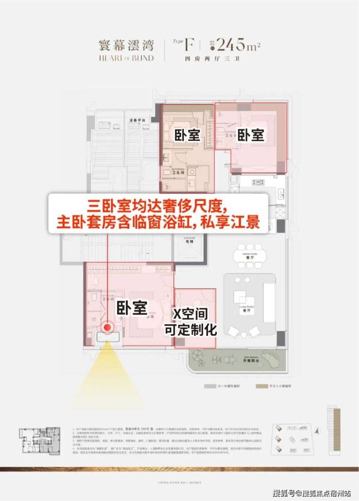 ④三卧全尺度奢适,主卧临窗浴缸瞰江!X空间定制方案可选,实现多场景布置!