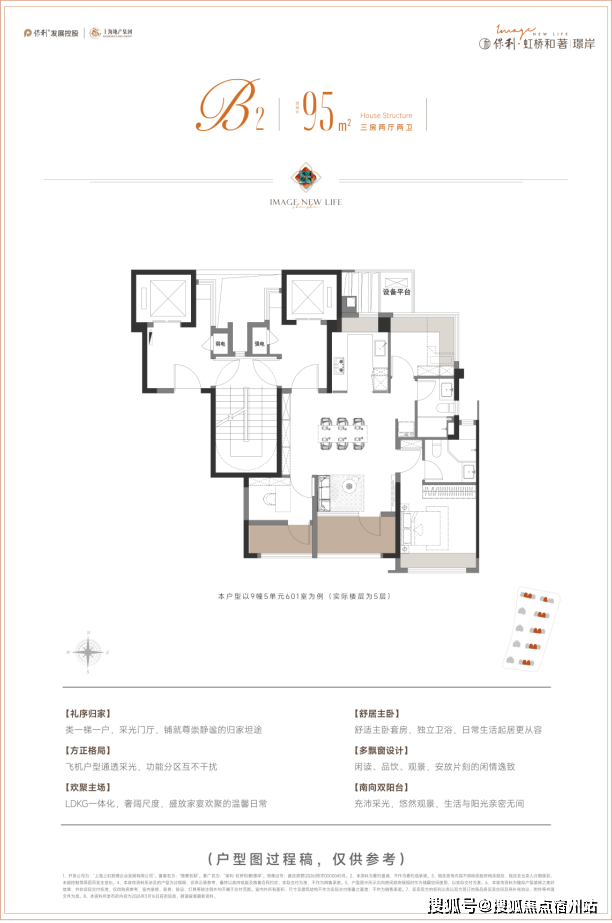 一梯一户、全明梯厅、双阳台、约 270°转角飘窗,几乎找不到短板,三口之家住得宽松,三代同堂也不会局促。