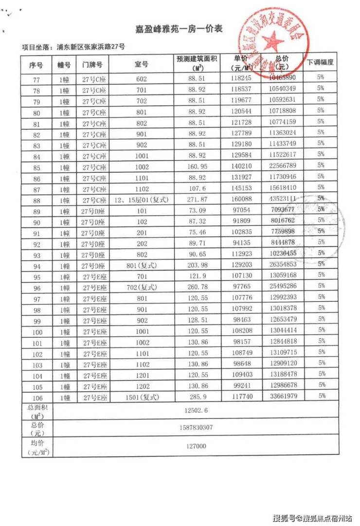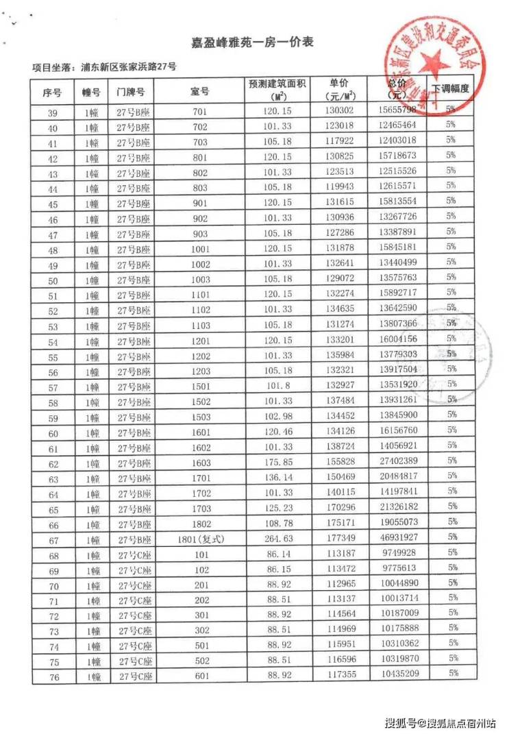 一房一价表