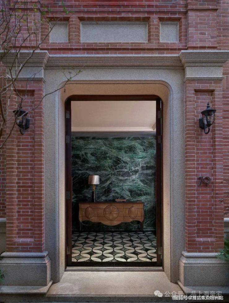 如今,弘安故地旧貌焕新檐,门牌79号传家500私人大宅,清水红砖干挂门柱与金沙黄石料的门框经典组合,重开当代海派家族的门庭,长方形的门楣上,将题写谁的福字匾额,推开天马纹样的绿柄桑实木雕刻对开门扇,又将传说谁家的掌故。