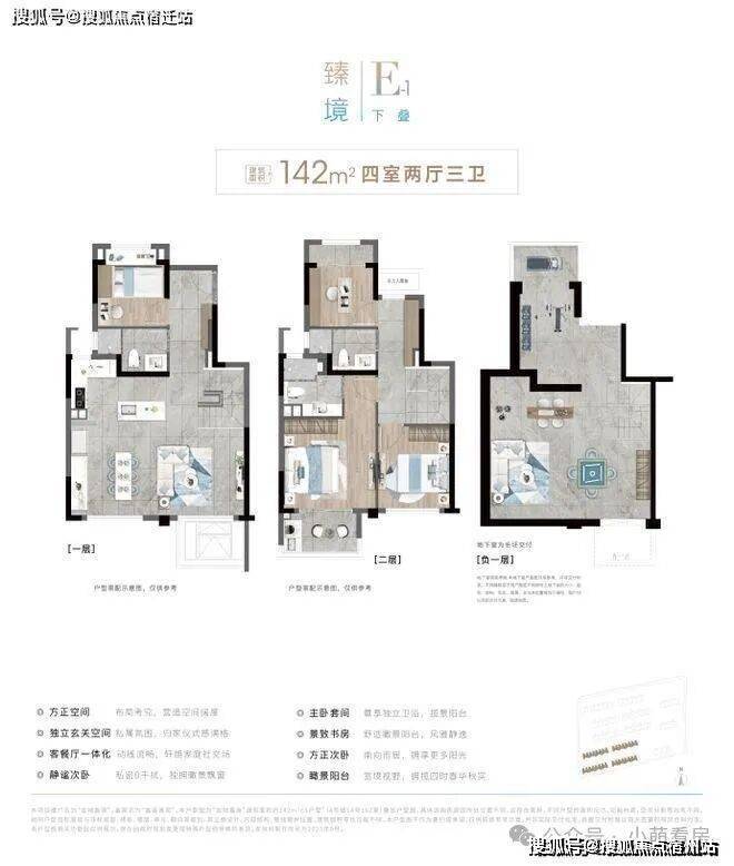 下叠户型四室两厅三卫,是金地嘉境的明星之作。地上一层,以中轴线精心划分,开放而方正,南北通透,宽景落地窗让阳光自由洒落,为家庭聚餐和亲友聚会提供了一个明亮而舒适的社交场所。南向的独立书房,不仅提供了静谧的办公环境,更将四季变换的美景尽收眼底。而负一层的多功能空间,可根据每位家庭成员的爱好,自由改造,成为个性化的私属领地。