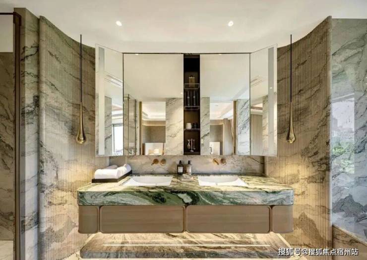 万科中興傲舍凝聚72种高端豪宅都难得一见的奢材,如皇家白奢石、Prada绿皮革面奢石、砖纹定制铝板等等,每一处细节都透露出精致与考究。