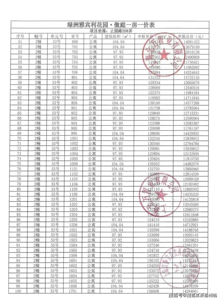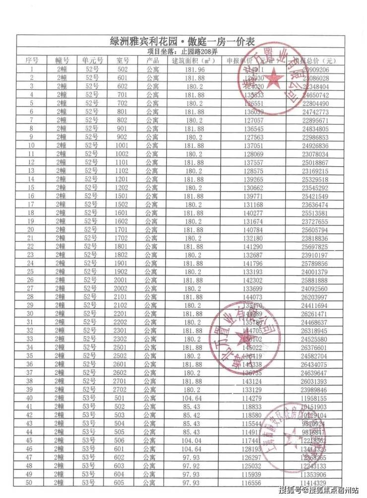 一房一价表发布