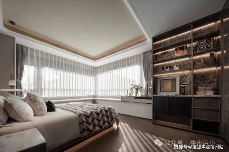 项目采用 鎏金塔冠造型,灵感来源于国际邮轮港的曲线,流光美学的外立面,既有辨识度又有质感,是未来业主身份的象征。阳光倾泻而下,在不同光影与环境下,让家成为一件艺术品。
