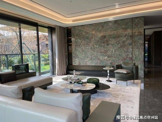 洽谈区的细节藏着品质密码:地面大理石采用无缝铺装工艺,近乎看不到拼接痕迹;悬浮吊顶搭配金属包边,层次感与光影美学兼备;墙面弧形处理与定制纹路地板,复刻了样板间的精装标准。翻阅资料便能发现其精装底气:嘉格纳全套厨电、316L 不锈钢水管、博洛尼定制橱柜,再加上三菱重工中央空调与霍尼韦尔新风系统,印证着顶豪级装标的含金量。