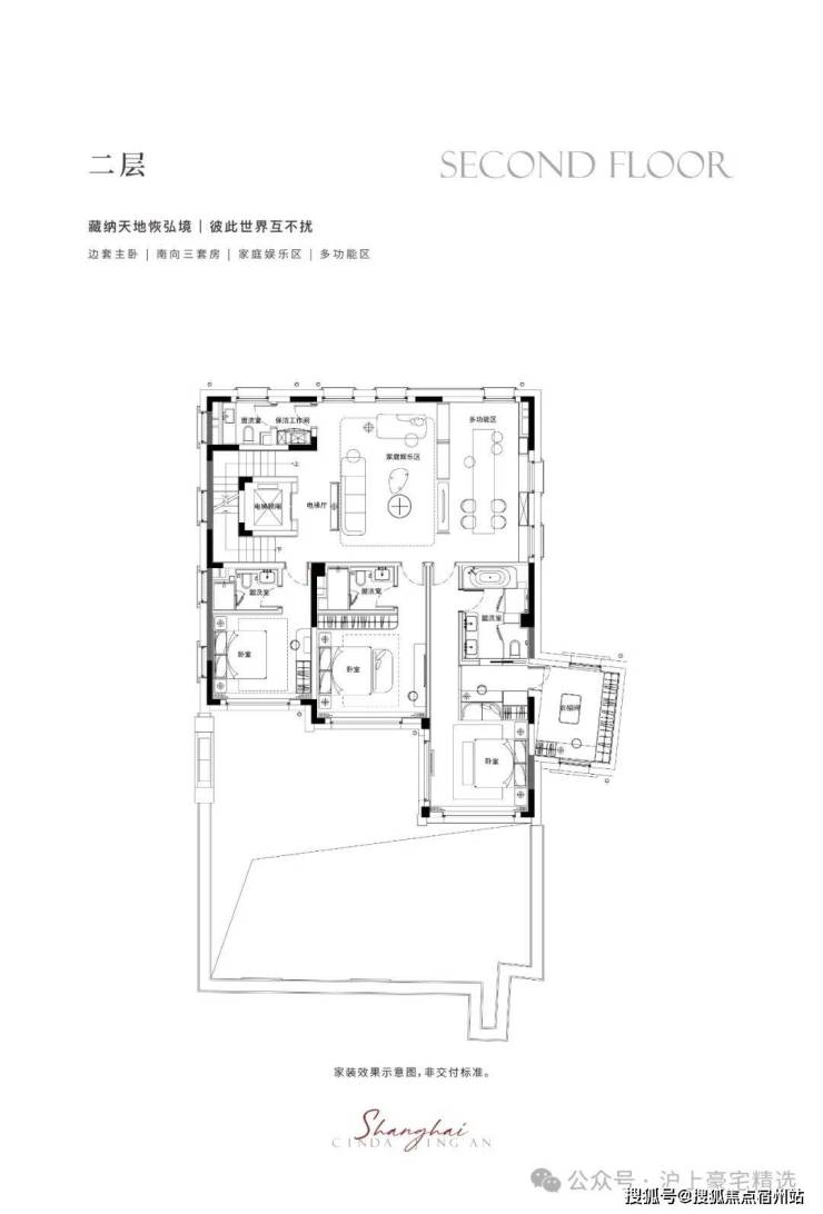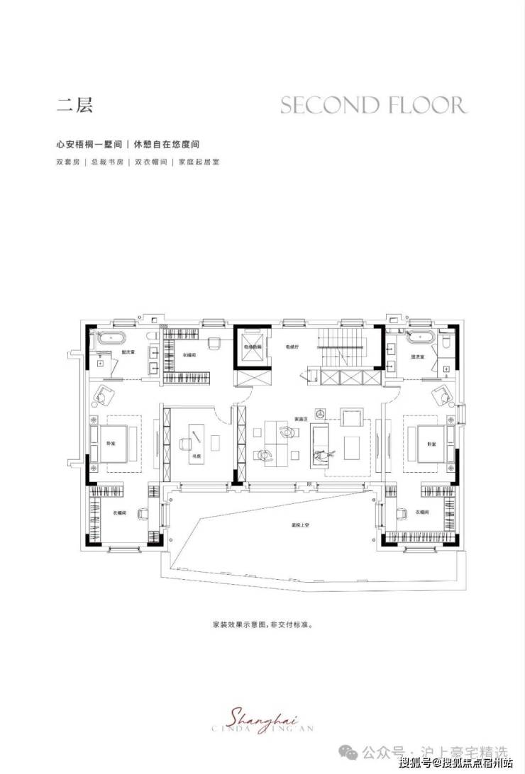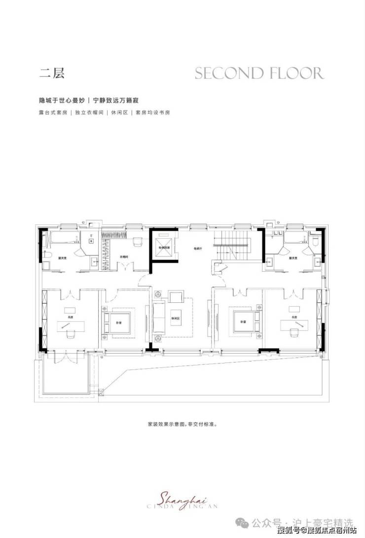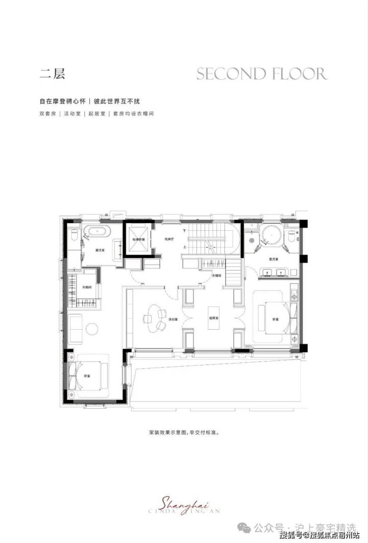 二-三层静谧于心,共享起居室多套房设计,尊崇栖居礼遇