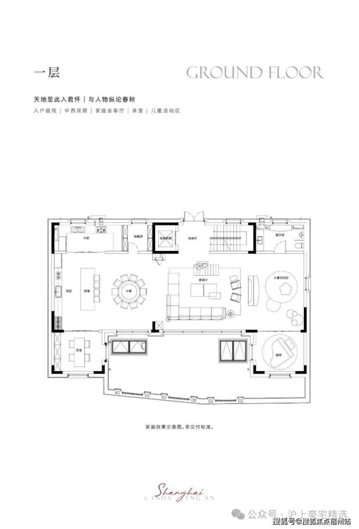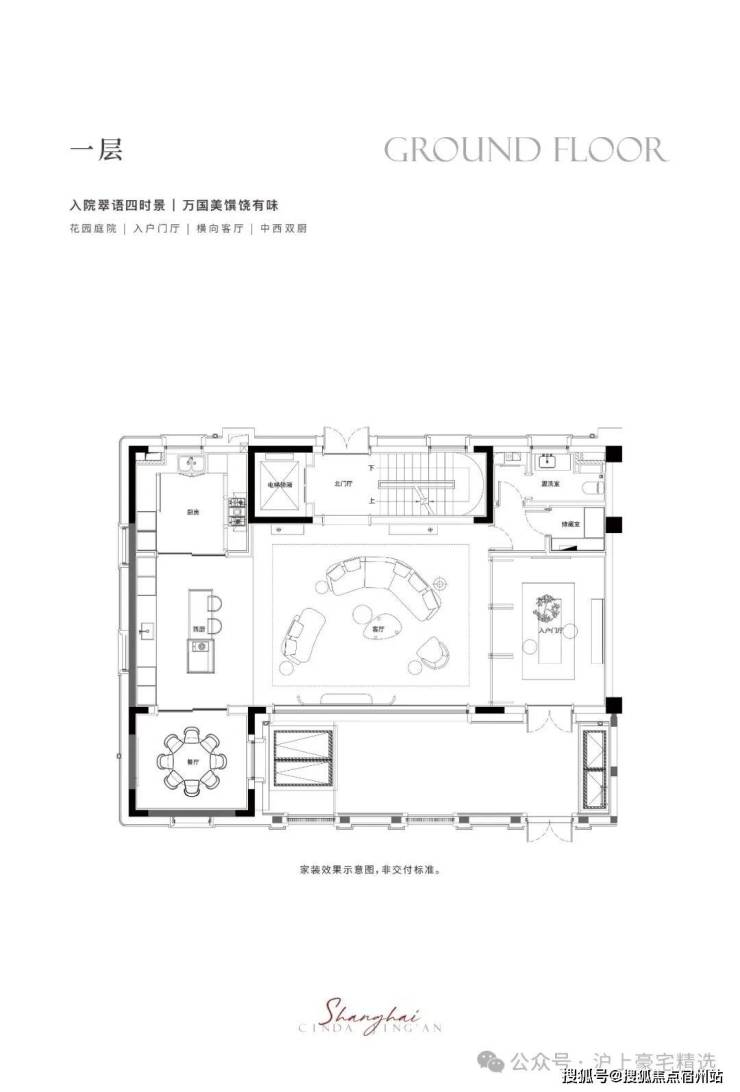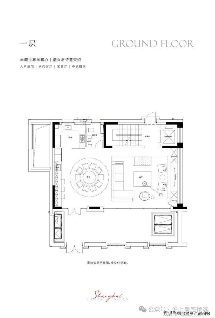 一层藏奢于境,入户门厅,阔绰横厅场域,生活从容尽显