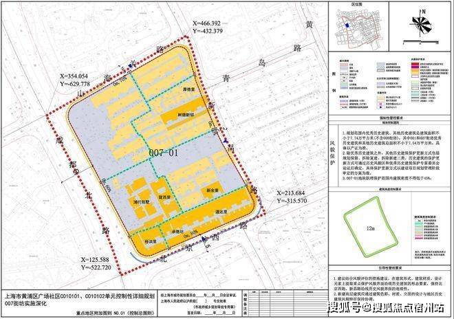 1号地块规划3栋超高层和1栋高层,最高达约165米。具体位置是西至成都北路、东至新昌路、南至新闸路、北至南苏州河路;7号地块规划为风貌别墅。