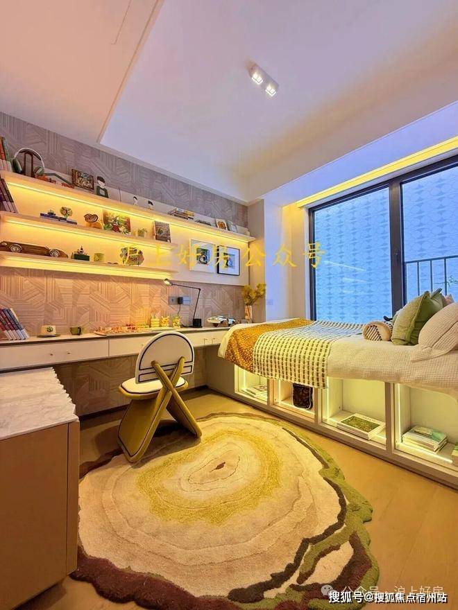 首个立体叠瀑系统,把自然叠进社区约10米高差打造“折叠景观”,约1600㎡下沉水院中嵌入约1200㎡超大水面与三座瀑布系统。蓝水晶岩板铺底,跳泉灵动,亲水卡座环抱,搭配游艇级软包材质——这不是社区,是藏在城市里的“云间秘境”。