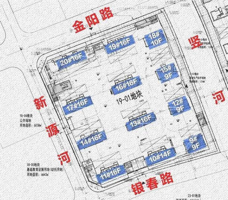 19-01地块:拟建7栋16F高层住宅、3栋9F高层住宅、1栋14F高层住宅、1栋10F高住宅以及若干配套用房。