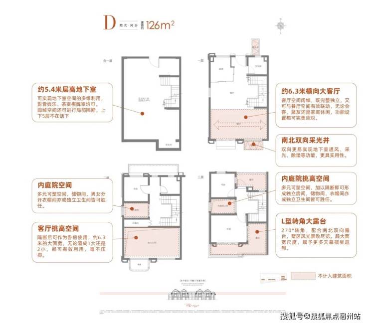 约5.4米层高地下室,纵享大尺度空间,加上大面积挑高可塑方案,可挑战N个126㎡的实用极限。
