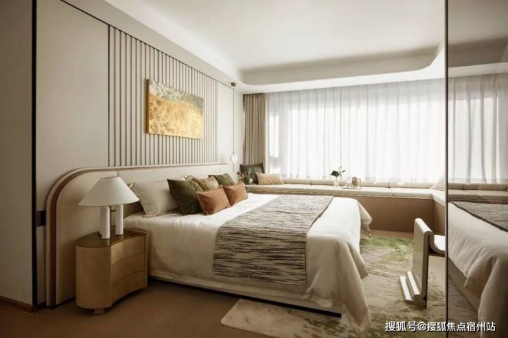 主卧套房设计,尺度惊人,贯穿南北,预留步入式衣帽间的空间, 配备270°转角飘窗 ,实现无界视野和优异采光,大宅气度油然而生!