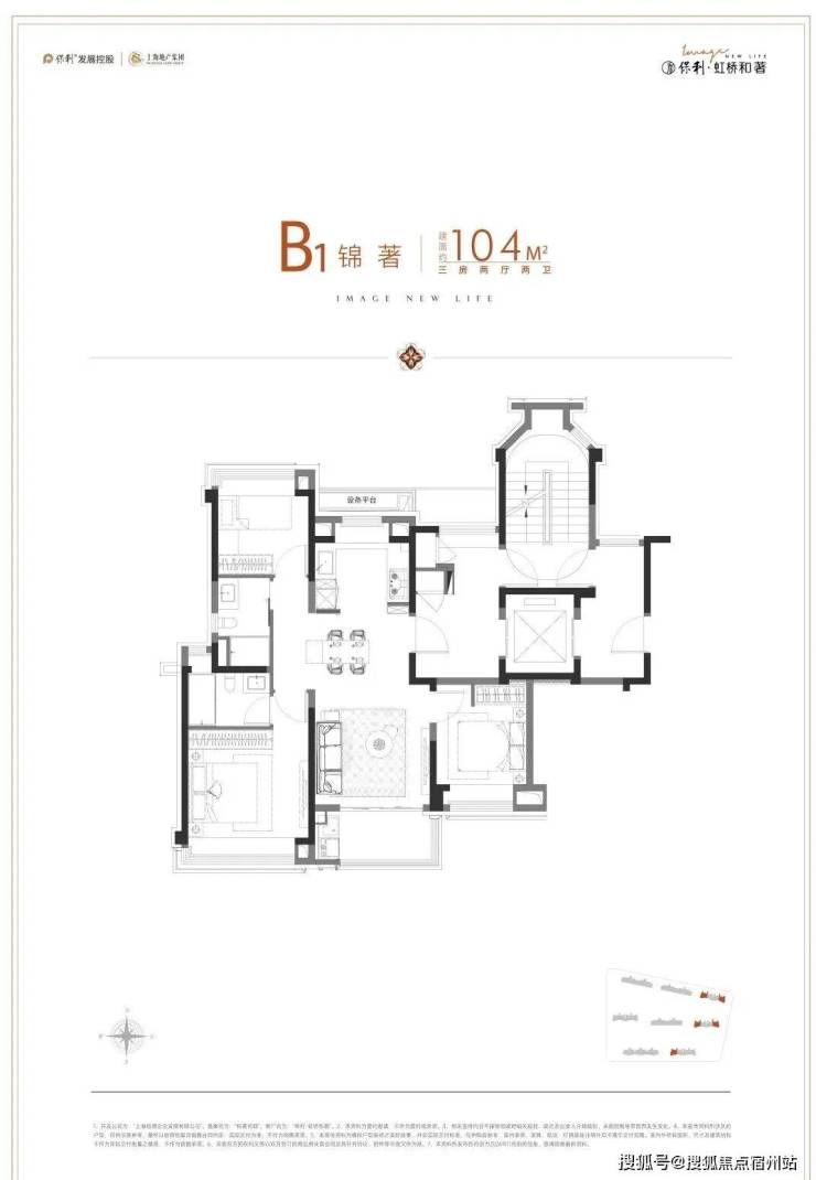 先说户型:如果你熟悉上海市场,你会发现目前市面上的户型普遍会面临:利用率低、收纳空间少、有连廊、卫生间少/功能性差、卧室太小不够等问题。但保利虹桥和著的建面约104㎡3房2卫,却很好的解决了以上所有问题: