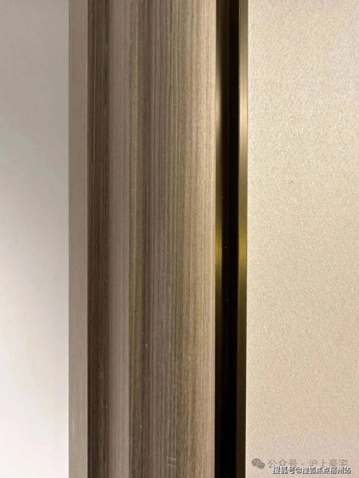 而且,门套做了弧形设计后,还叠加了金属线与墙纸做了分割,加强隔断界限感,提升室内家居精致度~