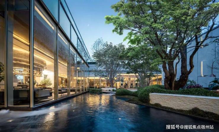 向外连接的是 下沉庭院的“古树浮桥”,水镜、古树、桥廊与围合立面共同形成一个“可停留”的自然剧场——不是装饰,而是鼓励你去使用的第三空间。