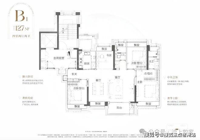 比起市面上普遍的三开间朝南动静分区户型,该户型至少有3大爆点:
