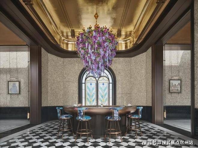 目光所及之处,各种精雕细琢的工艺、用材,则见不惜成本、兼容并蓄的匠艺。上海海鸥丽晶酒店同款的巴西金石材、储存量较少的玻利维亚蓝石材、华山公寓的掐丝珐琅工艺,在展现海派风情的同时,彰显奢华的质感。