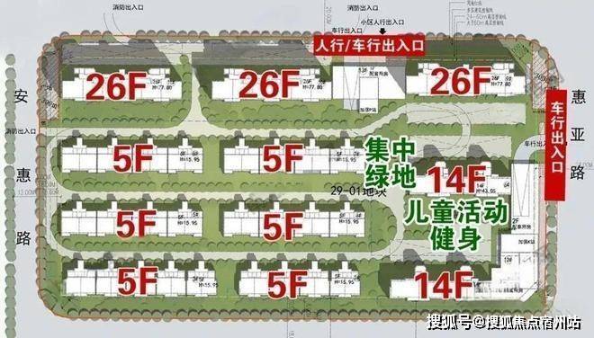 29-01地块原设计方案,✅✅时代之城售楼处电话:400 - 882 - 4258✅✅将北面人行/车行的出入口向西侧的安惠路方向进行了调整,并疑似将北面的主入口调整到了惠亚路一侧。