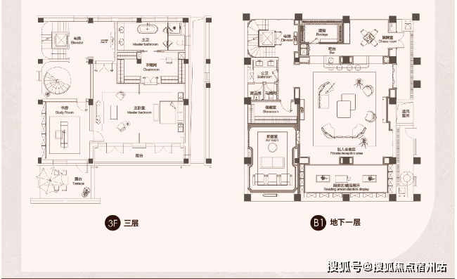 车位配比1:3,车库的下坡角度有特殊设计。地下室有专为司机提供的专属休息区和洗手间。长见识了!这就是塔尖生活方式!