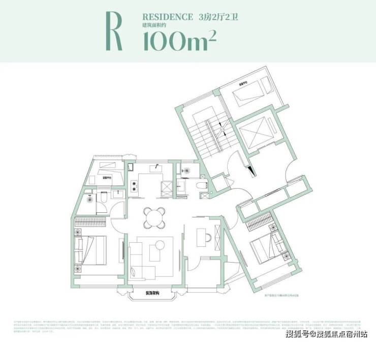 约99㎡户型设计:经典飞机户型格局!独立观景阳台!