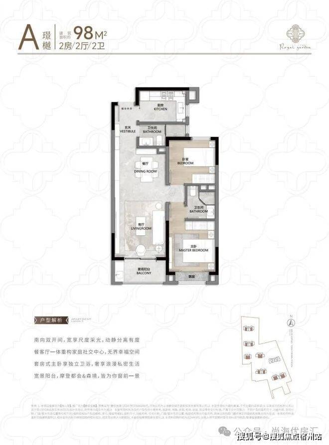 建面约94-100㎡的两房A户型是千万总价入主静安内环的理想之选,最高超79%的得房率,室内几乎没有走廊等空间浪费;✅✅静安玺樾售楼处电话:400 - 882 - 4258✅✅动静分离,主卧套房设计,配独立卫浴间,居住舒适;次卧功能定位多样,可做多功能儿童房、书房、工作室、电竞房等等;阳台尺度宽适,增加实用空间的同时,还可为宠物设计一处梦想乐园。