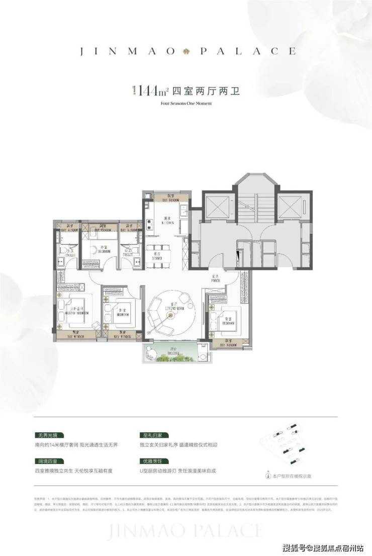 ● 建面约144㎡4房:同价格在杨浦只有百平米3房可选。