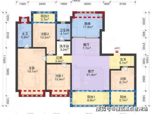 四开间朝南设计,南向面宽超 14 米, 客厅面宽达 4.8 米 ,搭配全景落地窗,视野无敌、采光极致。